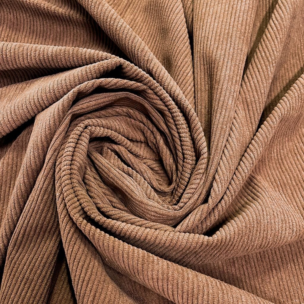 Плотный, и в то же время приятный материал с матовым блеском по лицевой стороне и нежной бархатистой поверхностью. На лицевой стороне классический ворс, создающий фактуру в полоску. Хорошая плотность ткани обеспечивает ее высокую износостойкость. Вещи из вельвета всегда актуальны, удобны в носке и не мнутся. Ткань прекрасно подходит для пошива свитшотов, платьев, юбок, а также спортивных костюмов.